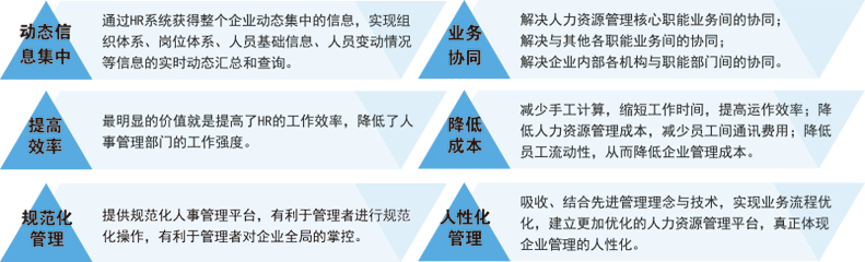 人力資源系統(tǒng)作為整個(gè)信息化系統(tǒng)的重要組成部分,是其他業(yè)務(wù)系統(tǒng)的基礎(chǔ) 模塊,其它業(yè)務(wù)系統(tǒng)都構(gòu)筑在人力資源系統(tǒng)基礎(chǔ)上,其他業(yè)務(wù)系統(tǒng)中關(guān)系到 人員和部門(mén)的信息都來(lái)自該模塊,其他模塊也需要傳遞數(shù)據(jù)給人力資源模塊 等,比如員工業(yè)績(jī)(參與的項(xiàng)目,在項(xiàng)目中承擔(dān)的角色)數(shù)據(jù)直接從項(xiàng)目管 理模塊中抽取。所以說(shuō)通過(guò)人力資源管理,以往人員信息比較混亂,很難了 解到一個(gè)人的全貌信息,并且各方面的信息也不一致,發(fā)生變化時(shí)很難統(tǒng)一 更新的諸多問(wèn)題可以得到有效的解決。
