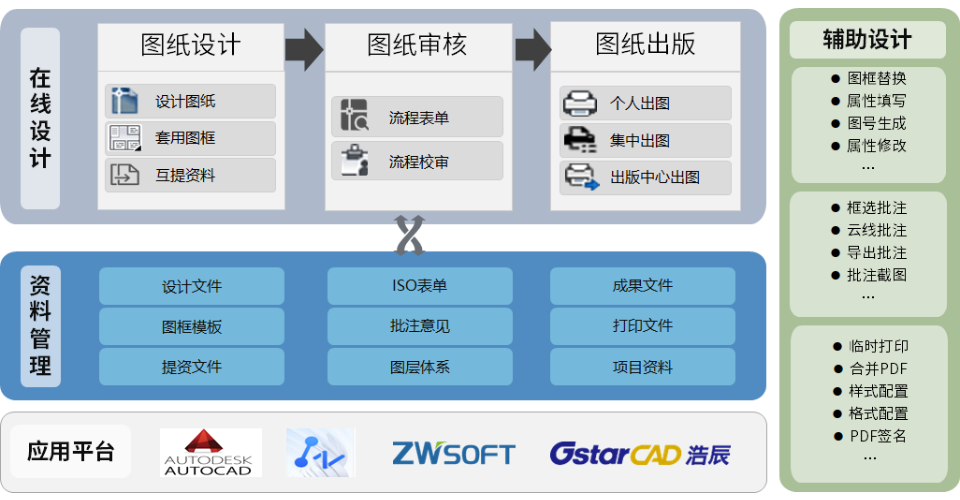 流程自動化管理設計過程,增強設計過程的規(guī)范性,減少審圖過程的人力資源浪費,提高出圖質量
