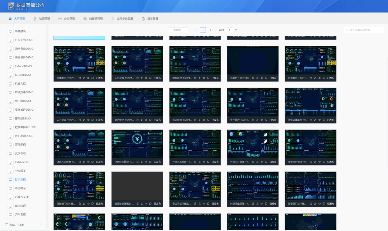 系統(tǒng)提供餅圖、柱圖、折線圖、雷達(dá)圖、表格、指針、地圖、漏斗圖、跑馬燈、顏色塊、字符云等豐富的圖表控件;