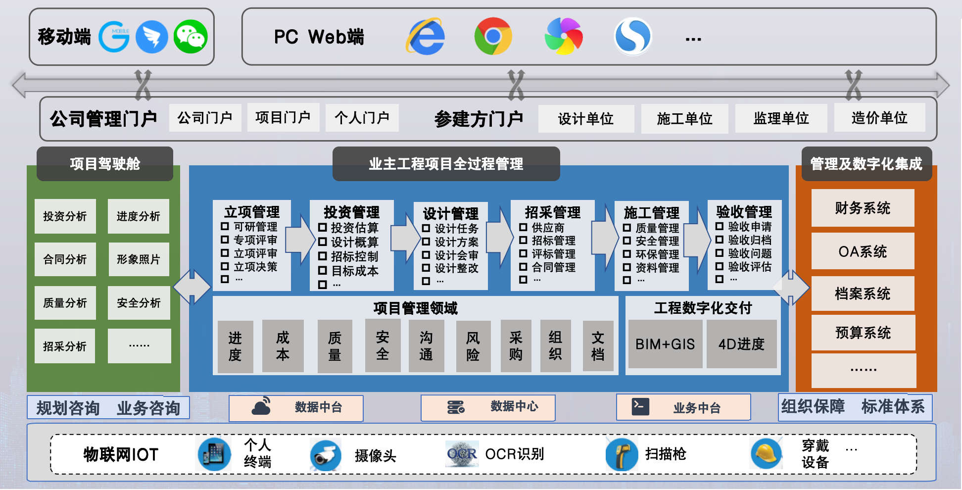 構(gòu)建業(yè)主方“投資、設(shè)計(jì)、招采、施工、運(yùn)維”管理一體化平臺(tái),實(shí)現(xiàn)工程全周期、全方位管理