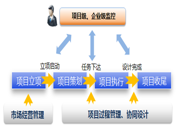 整個(gè)項(xiàng)目管理的過程包括:項(xiàng)目立項(xiàng)、項(xiàng)目輸入、項(xiàng)目策劃(含項(xiàng)目主管策劃、設(shè)總策劃、專業(yè)負(fù)責(zé)人策劃)、項(xiàng)目執(zhí)行(方案必選、方案設(shè)計(jì)、初步設(shè)計(jì)、施工圖設(shè)計(jì)(設(shè)計(jì)評審、資料互提、校審會簽、出圖管理、歸檔管理))、項(xiàng)目變更以及項(xiàng)目監(jiān)控。