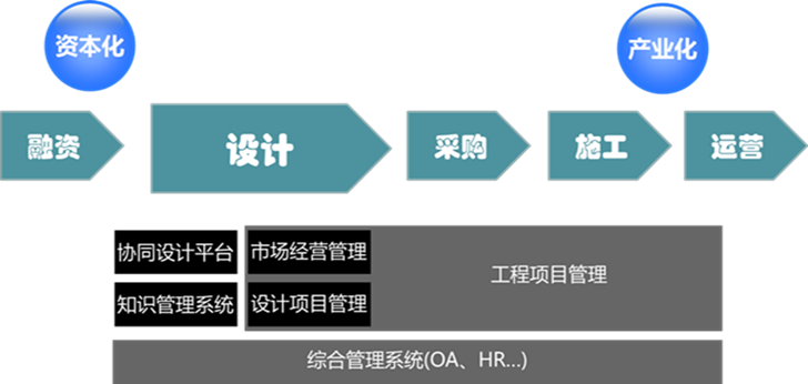 近年來,一些企業(yè)由單純的設(shè)計業(yè)務(wù)向采購、施工甚至運營方面的全產(chǎn)業(yè)鏈“產(chǎn)業(yè)化”方向進行業(yè)務(wù)延伸;還有一些企業(yè)通過上市、PPP等融資手段,向上游的“資本化”方向延伸。以往的管理信息化工作主要是致力于建設(shè)市場經(jīng)營系統(tǒng)、協(xié)同設(shè)計平臺、設(shè)計項目管理系統(tǒng)、工程項目管理系統(tǒng)、綜合管理系統(tǒng)等內(nèi)部管理系統(tǒng),以支撐價值鏈各環(huán)節(jié)業(yè)務(wù)的發(fā)展: