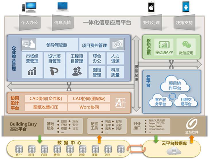 上海金慧軟件有限公司通過與眾多行業(yè)客戶共同探索、合作的經(jīng)驗歸納互聯(lián)網(wǎng)思維在工程勘察設(shè)計行業(yè)相關(guān)領(lǐng)域的創(chuàng)新應(yīng)用,并結(jié)合傳統(tǒng)信息化建設(shè)提煉出工程勘察設(shè)計行業(yè)信息化建設(shè)的總體框架及發(fā)展路徑建議。