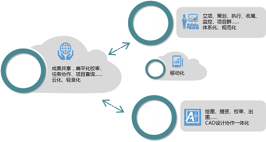 項(xiàng)目管理一體化平臺(tái)已經(jīng)形成“3+1”的管理模式,即項(xiàng)目協(xié)作云平臺(tái)、CAD協(xié)同設(shè)計(jì)平臺(tái)、項(xiàng)目管理平臺(tái)以及手機(jī)移動(dòng)通。工程勘察設(shè)計(jì)行業(yè)中無論是階段性成果還是最終交付的成果,都是智力密集型行業(yè)衡量工作成效的關(guān)鍵指標(biāo),并且對(duì)于成果多版本管控、內(nèi)容差異分析、協(xié)作化的批注審核都是管理的重點(diǎn)。金慧采用項(xiàng)目化的管理模式,通過任務(wù)協(xié)作為紐帶,滿足企業(yè)內(nèi)外部項(xiàng)目各方協(xié)作與管理的需求。避免項(xiàng)目信息溝通不暢,減少項(xiàng)目進(jìn)度方面風(fēng)險(xiǎn),節(jié)省項(xiàng)目成本。