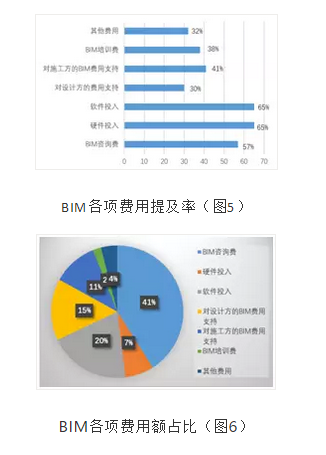 而建設(shè)單位對設(shè)計院BIM設(shè)計費用支持程度低(圖5),僅有30%和41%的建設(shè)單位會為設(shè)計方提供費用支持。