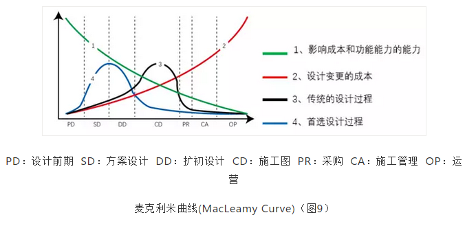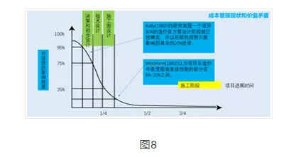 Kelly(1982)的研究發(fā)現(xiàn)一個項目80%的造價在方案設(shè)計階段就已經(jīng)確定,所以后續(xù)的控制只能影響到其余的20%投資(圖8)。