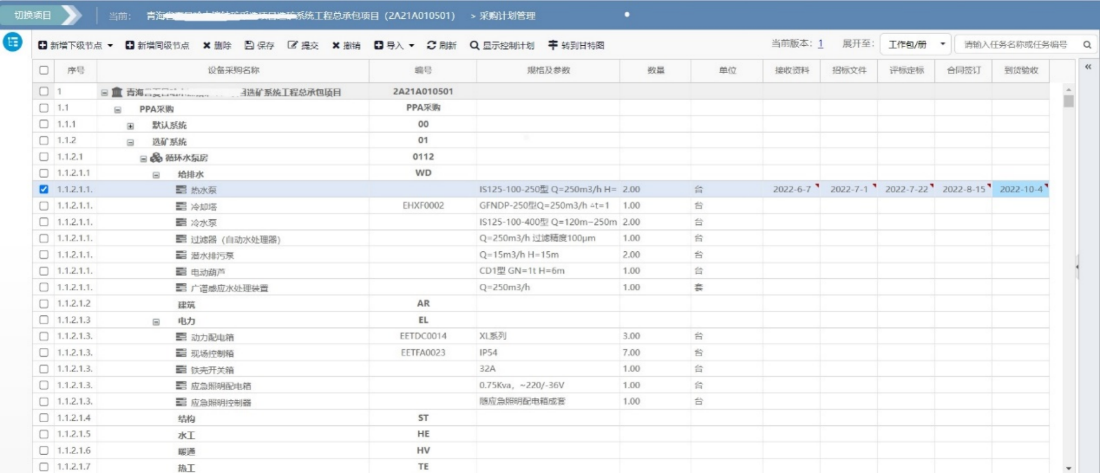 中國瑞林嚴格按照采購計劃執(zhí)行采購過程,確保采購活動與企業(yè)整體戰(zhàn)略和項目目標保持一致,同時金慧公司結(jié)合中國瑞林管理特色,在系統(tǒng)中按照采購WBS結(jié)構(gòu)(項目-系統(tǒng)-子項-專業(yè))制定項目采購計劃,項目采購、招標、合同、出入庫等嚴格按照計劃,實現(xiàn)采購活動的經(jīng)濟性、有效性和合規(guī)性。