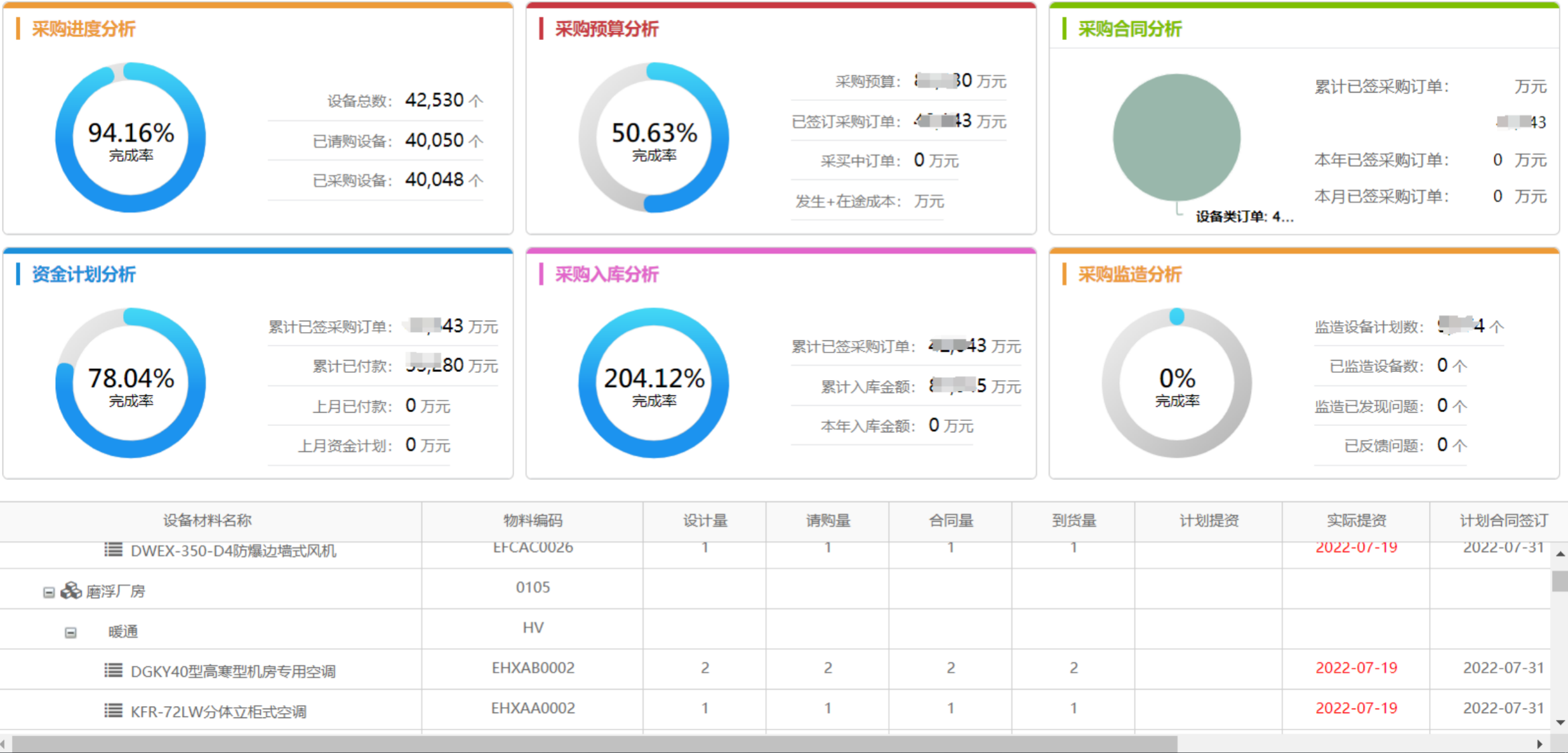 最后,項目采購看板為采購經(jīng)理等角色人員提供了全面的掌握采購動態(tài)的可視化工具。通過采購進度分析、采購預(yù)算分析、采購合同分析等功能,幫助決策者更好地了解采購情況,制定更加科學合理的采購策略。