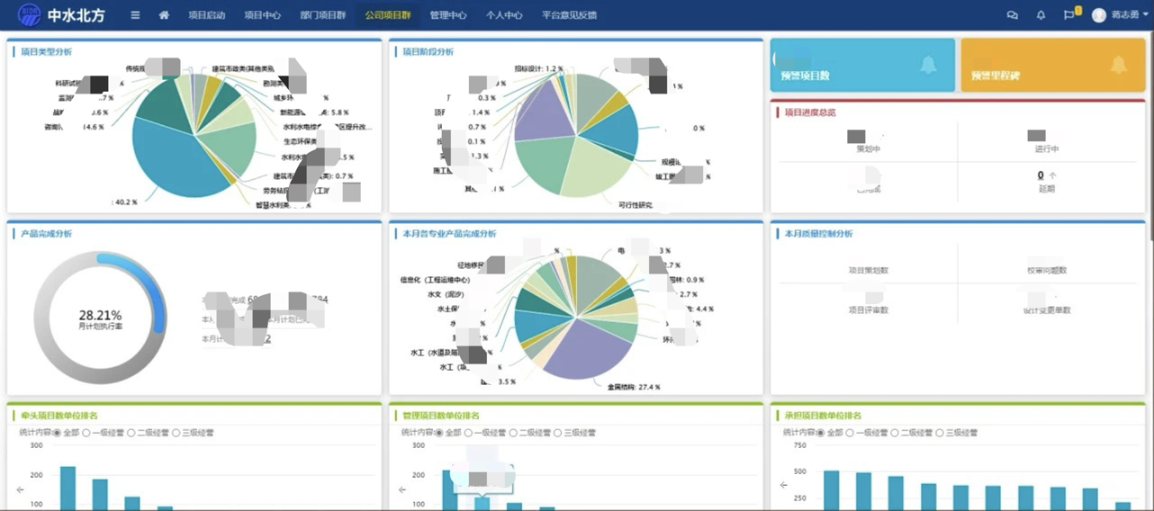 平臺是公司數(shù)字化轉(zhuǎn)型的核心平臺,提供數(shù)據(jù)支持。項目管控的進度、成本、質(zhì)量等原始數(shù)據(jù),大多由協(xié)同設(shè)計平臺產(chǎn)生。并且,平臺實現(xiàn)了管理可視化、數(shù)據(jù)開放化,可對項目質(zhì)量、項目進度、項目出圖以及人員負(fù)荷等關(guān)鍵指標(biāo)進行可視化分析。這種直觀的展示方式,使得項目管理者能夠輕松掌握項目的實時狀態(tài),及時發(fā)現(xiàn)潛在的風(fēng)險和問題,并迅速采取相應(yīng)的處理措施。