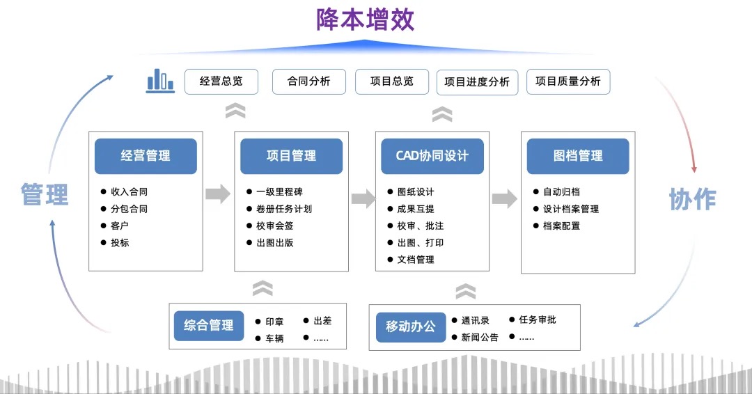 ?協(xié)作難:項(xiàng)目全過程、多專業(yè)協(xié)作難;設(shè)計(jì)規(guī)范不統(tǒng)一,提資文件難控制,設(shè)計(jì)成果版本亂;日常辦公事務(wù)(出差、報(bào)銷、用印等)流程、數(shù)據(jù)不關(guān)聯(lián)。
