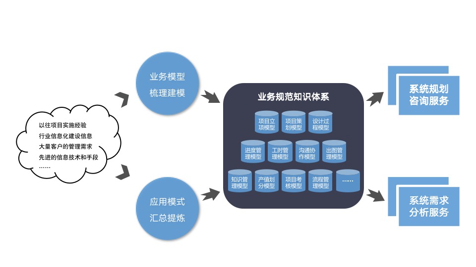 1)管理咨詢服務(wù):主要包括信息化規(guī)劃咨詢、信息編碼咨詢、項(xiàng)目管理體系咨詢服務(wù)。