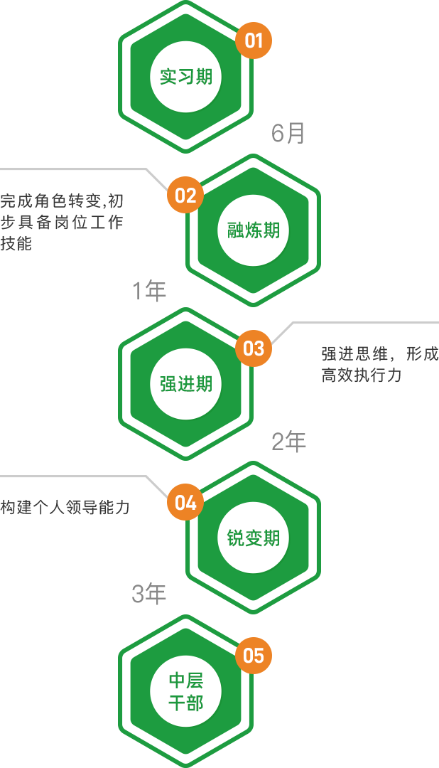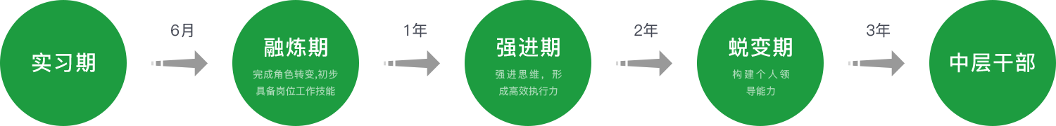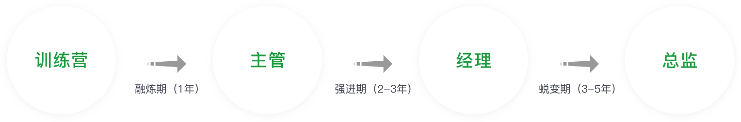 和聚力培養(yǎng)周期為三年,不同階段輔以不同培養(yǎng)項(xiàng)目,職位目標(biāo)為晉升至中層。6次評(píng)估、4次晉升、15場(chǎng)集中培訓(xùn)、3次拓展活動(dòng)、9次座談會(huì)/案例分享